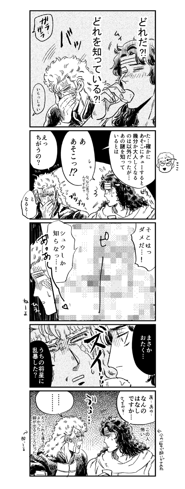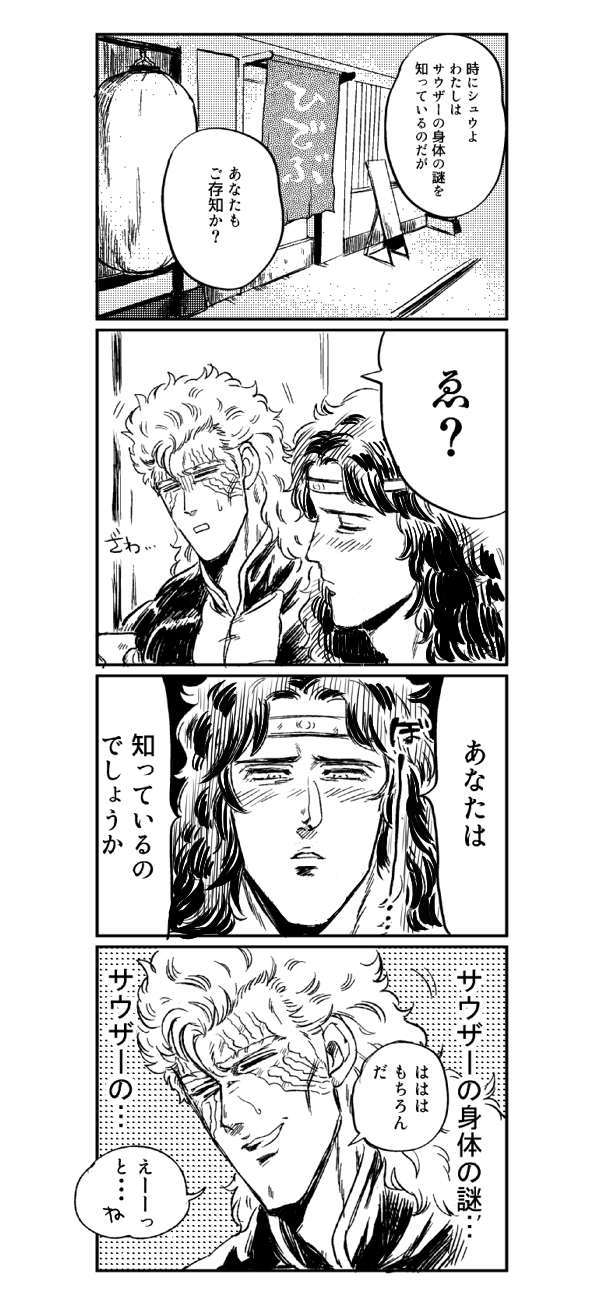 ふつーに何も考えず趣味で白髪にヒゲのトキ描いてたんですけど、よくよく考えたら世紀末真っ只中でしたね。でもしゅさんは覚醒後。これも趣味である。